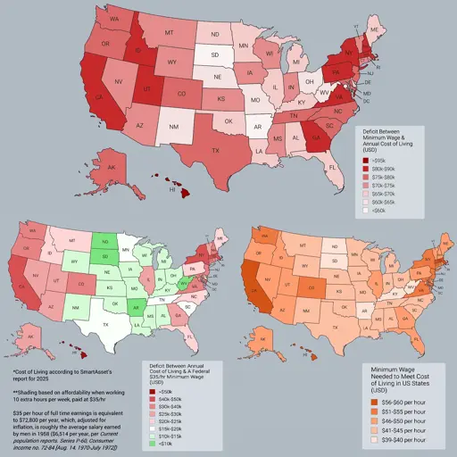 Edit: the red map, for anyone unaware, is based on current individual state minimum wages and not the current federal minimum wage