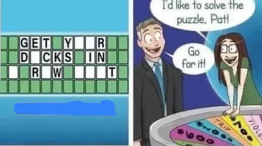 minus-squareAdulated_Aspersion@lemmy.worldlinkfedilinkarrow-up11·2 months agoIt’s a “Before and After” Wheel of Fortune category. Good job on the solve! The internet hasn’t completely ruined you!