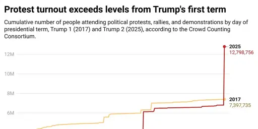 arrow-up1734arrow-down1external-linkSecond "No Kings Day" protests likely the largest single-day political demonstration since 1970, with 5.5-8.7 million participantswww.gelliottmorris.comCurmuffin@fedia.io to politics @lemmy.world · 1 month agomessage-square70linkfedilinkfile-text