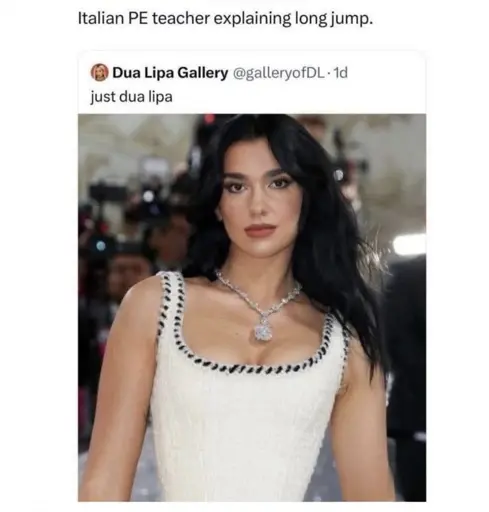 “Just dua lipa” = “just do a leap-a” in the context of this joke.