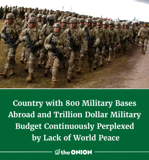Clearly the solution is to have one almighty military power, capable of enforcing peace in every corner of the world and in every living room. We could call it God Inc… or Musk Robotics… Let us outsource our humanity to a higher power, for surely it can’t do worse than petty wannabe dictators like putin and trump. Right? Right?