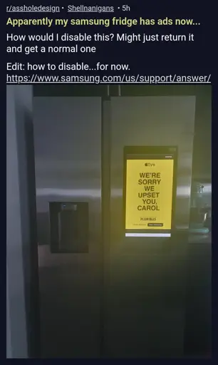 arrow-up1811arrow-down1imageRefrigerator ads are finally here!discuss.onlineByteOnBikes@discuss.online to A Boring Dystopia@lemmy.world · 14 days agomessage-square312linkfedilink