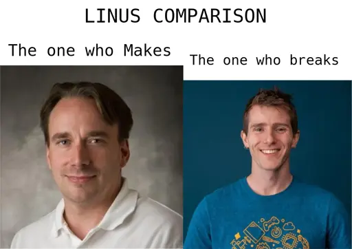 Erik L. Midtsveen 🏴🌈@lemmy.wtf to linuxmemes@lemmy.worldEnglish · 11 days agoLinus Comparisonlemmy.wtfimagemessage-square142linkfedilinkarrow-up1816arrow-down149