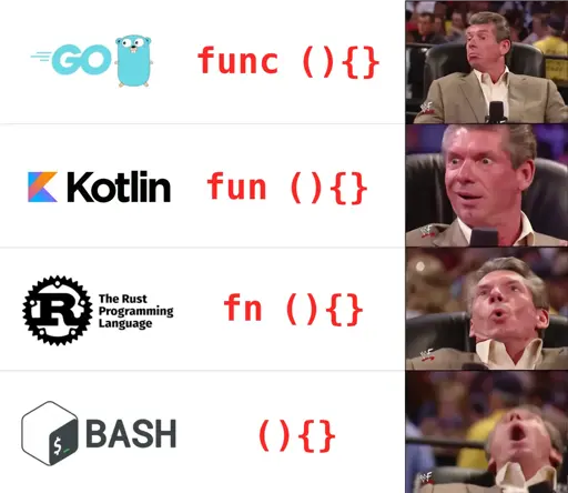 Cipherd@lemmy.ml to Programmer Humor@programming.dev · 10 days agofunctionslemmy.mlimagemessage-square116linkfedilinkarrow-up1653arrow-down19file-textcross-posted to: programmerhumor@lemmy.ml