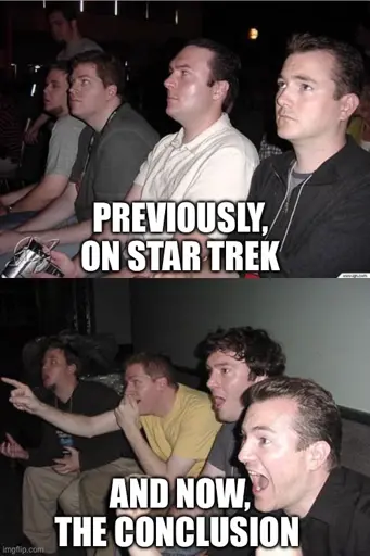 Edit: not sure you can make out the blurry captain of the Orville here getting scolded on the Enterprise