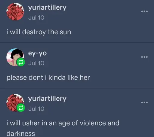 8·8 days agoI feel like we’re forgetting that this is the apocalypse. He wants to start the apocalypse.